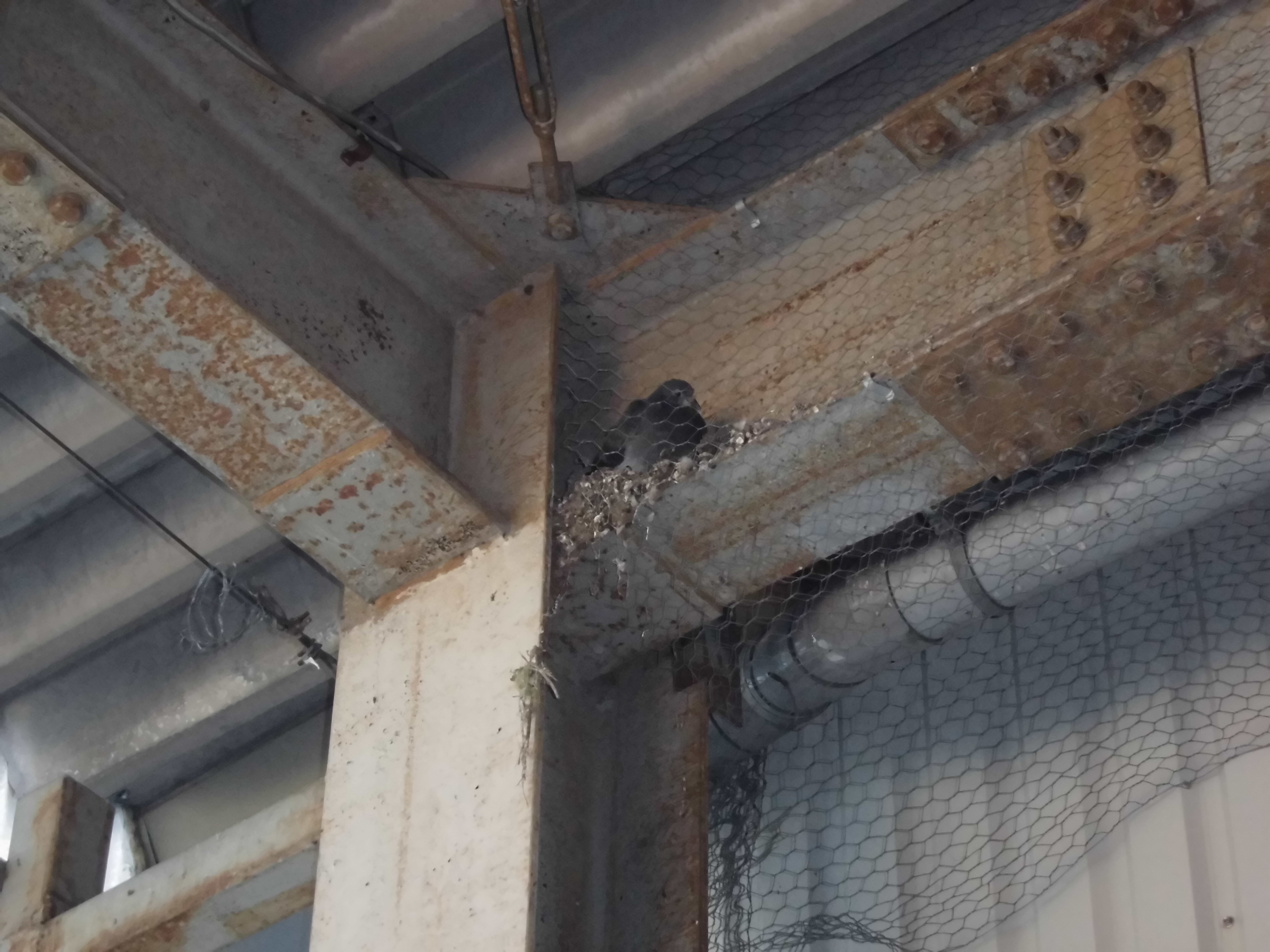 わずかな隙間から侵入し、H鋼の角部に造巣としています。